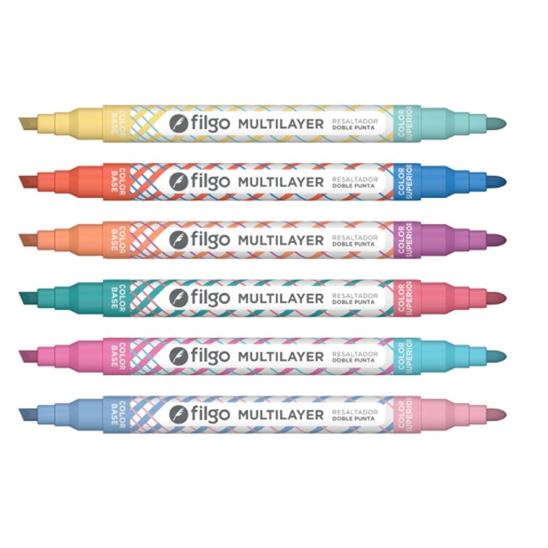 RESALTADOR FILGO MULTILAYER SET X 6 SURTIDO DOBLE PUNTA