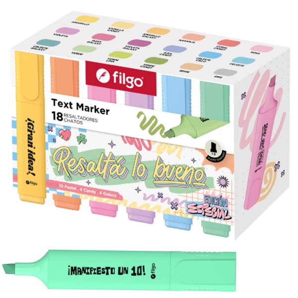 RESALTADOR FILGO TEXT MARKER ESTUCHE MAGNETICO X 18 SURTIDO PASTEL